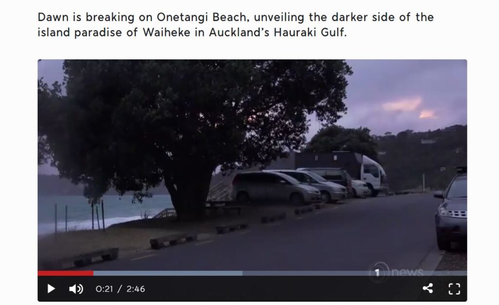 Click image to watch video on https://www.1news.co.nz/2021/02/12/growing-homelessness-on-millionaires-paradise-waiheke-island/
