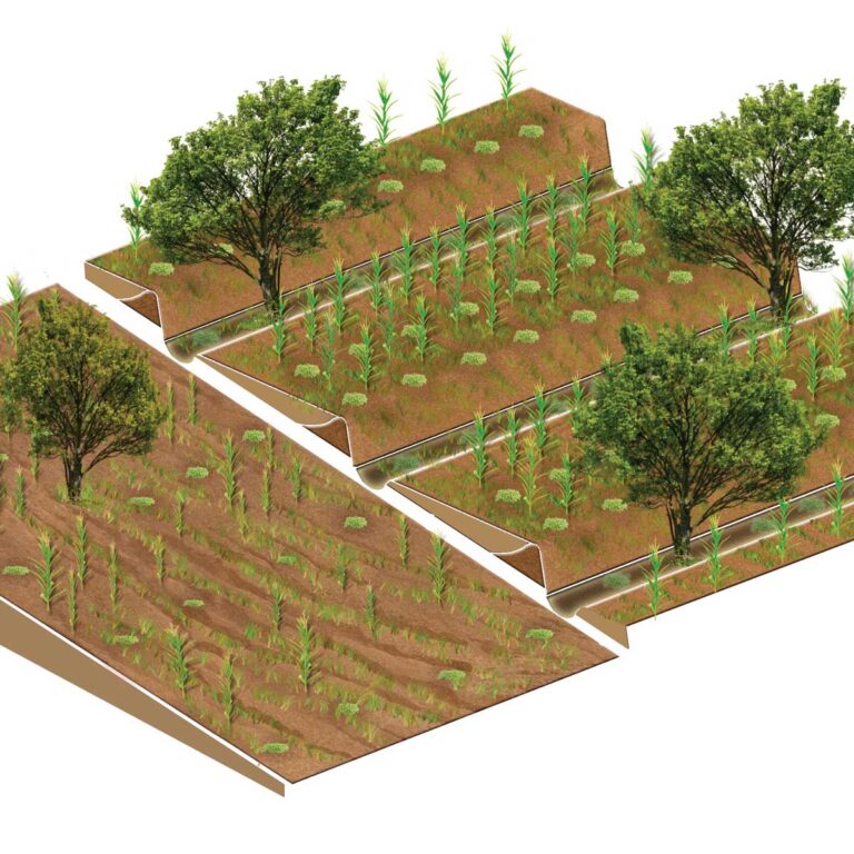 Surplus Resource: Instead of managing it as a waste product, transform the clay into a surplus resource and truck it 5 km to level sloped productive land to be prepared by the excavator as a flat market garden.